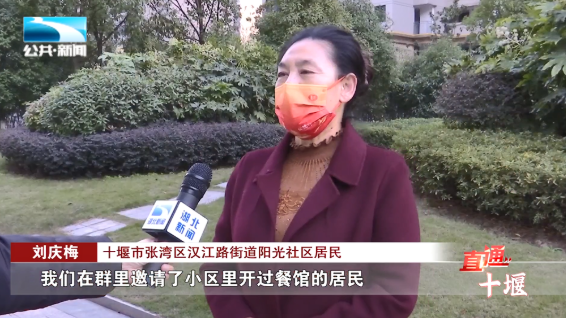 十堰市张湾区汉江路街道阳光社区居民 刘庆梅:“我们每栋楼都有很多优秀党员和热心的志愿者,我们可以吃完饭以后,顺手把餐配送过去。”