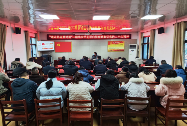 12月16日,湖北大学“理论热点面对面”实践基地学习贯彻党的二十大精神“百马行动”宣讲活动在咸宁市咸安区向阳湖镇举行。湖北省委宣讲团成员、湖北省“百马行动”宣讲团成员、马克思主义学院易振龙教授,通过腾讯会议线上为向阳湖镇全体干部作专题辅导报告。