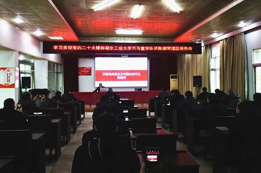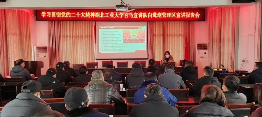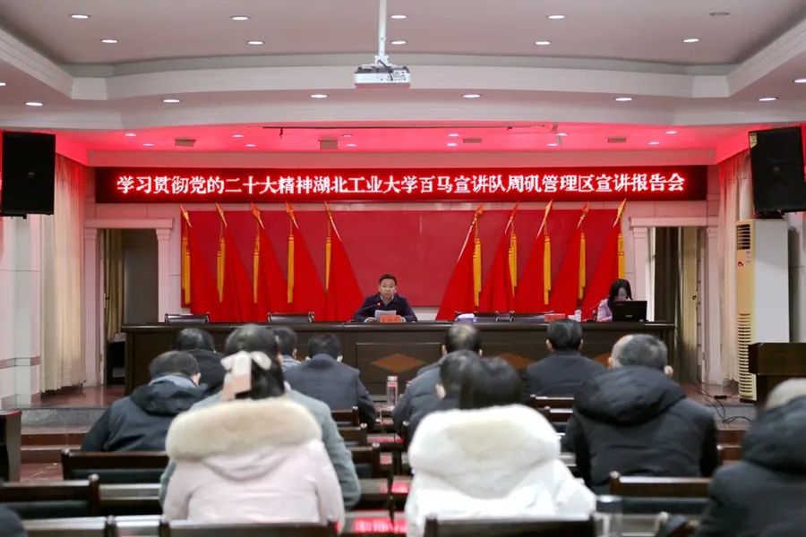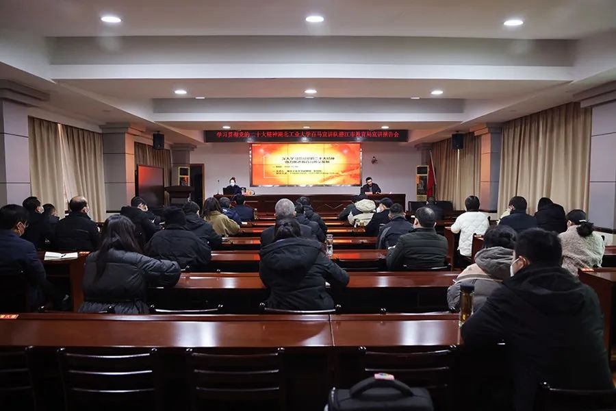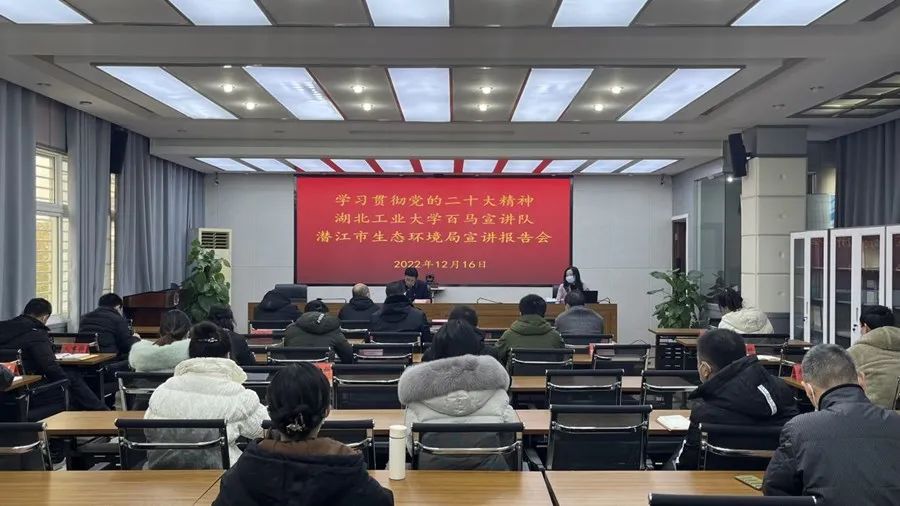 12月16日,湖北工业大学“百马宣讲队”来潜江市深入各地各单位,就学习宣传贯彻落实党的二十大精神作宣讲报告。