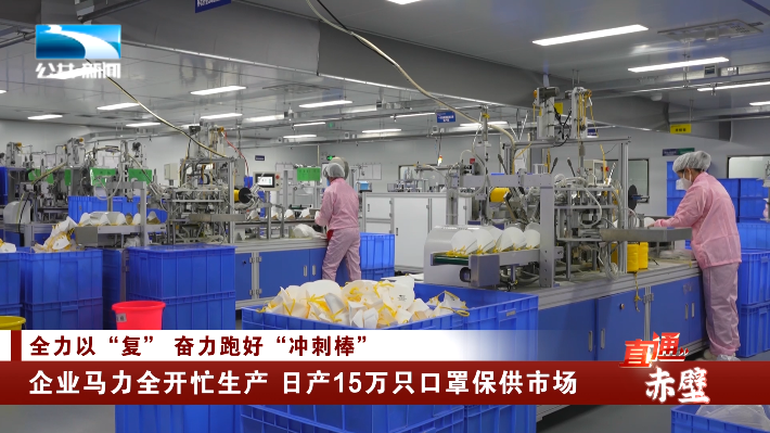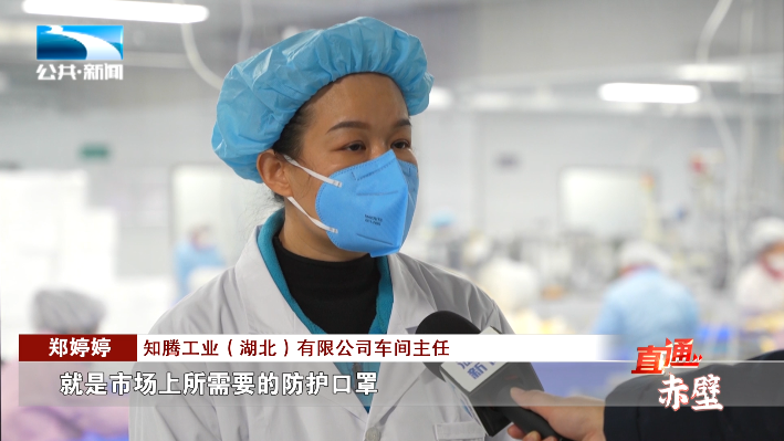 知腾工业(湖北)有限公司车间主任 郑婷婷:“我们现在生产的就是市场上所需要的防护口罩,目前,每天的产能大概是15万只,民用口罩的话是8万只,医用防护口罩是7万只,产能比平常增加了两倍多。”