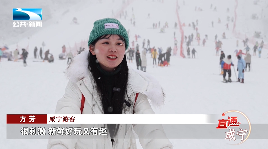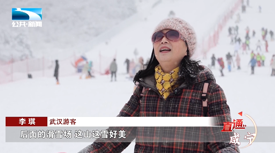 武汉游客 李琪:“又可以赏雪景又可以滑雪,而且今年是第一次看到这个雪,后面的滑雪场,这山这雪好美。”