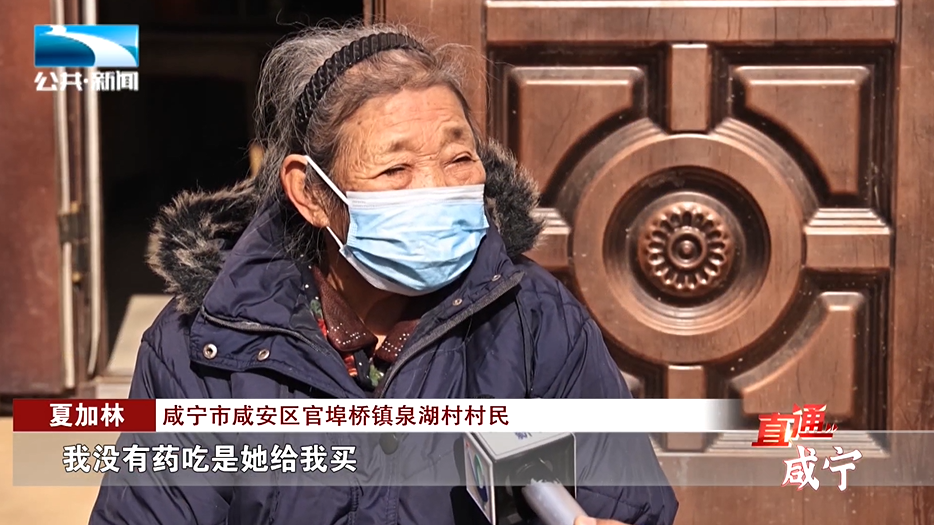 咸宁市咸安区马桥镇钱庄村1组村民 张桂林:“我在乡下又不方便,到外头去又难。几十岁了带着孙子,又怕摔跤,又怕被感染(新冠),口罩给我送来,药也给我送来了。”