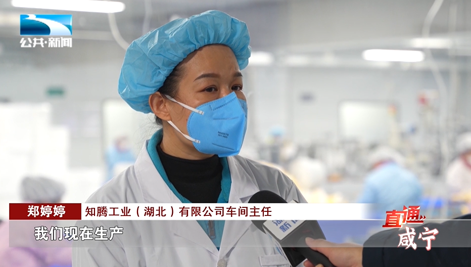 知腾工业(湖北)有限公司车间主任 郑婷婷:“我们现在生产市场上所需要的防护口罩,目前(每天)的产能大概是15万只,民用口罩的话是8万只,医用防护口罩是7万只,比平常增加了两倍多。”