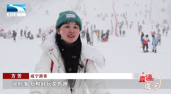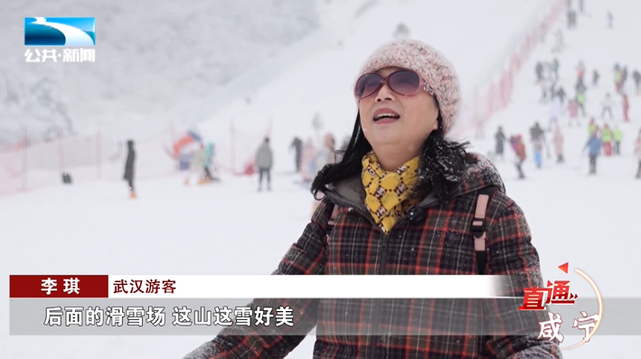 武汉游客 李琪:“又可以赏雪景又可以滑雪,而且今年是第一次看到这个雪,后面的滑雪场,这山这雪好美。”