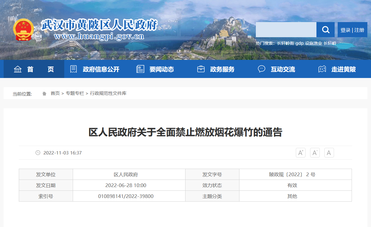 记者了解到,武汉市江岸区、江汉区、硚口区、汉阳区、武昌区、青山区、洪山区全年禁止燃放烟花爆竹;除此之外,2022年,武汉市新城区——江夏、黄陂、新洲、东西湖区相继发布全面禁鞭通告,2022年7月1日起,这些行政区域全面禁止燃放烟花爆竹,有效期5年,标志着武汉在地理版图和时间跨度上,首次实现全地域、全时段的全时空禁鞭。