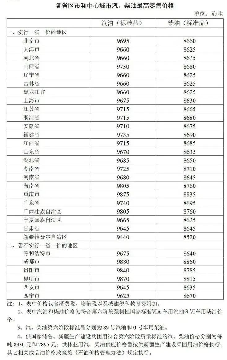 根据近期国际市场油价变化情况,按照现行成品油价格形成机制,自2023年1月3日24时起,国内汽、柴油价格(标准品,下同)每吨分别提高250元和240元。折合升价,92号汽油上调0.2元/升、95号汽油和0号柴油分别上调0.21元/升和0.2元/升。相关价格联动及补贴政策按现行规定执行。