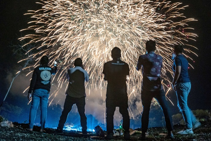 2022年12月31日,人们在印度尼西亚巴厘岛观看新年烟花。新华社发(比辛拉西 摄)
