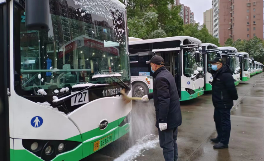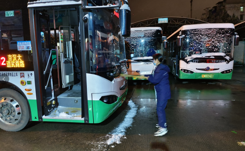 1月15日是南方小年,由于天气突变,武汉下了一夜雨雪,对公交营运和市民出行都带来了影响,武汉公交一公司一分公司为了给乘客营造安全的乘车环境,全员出动。