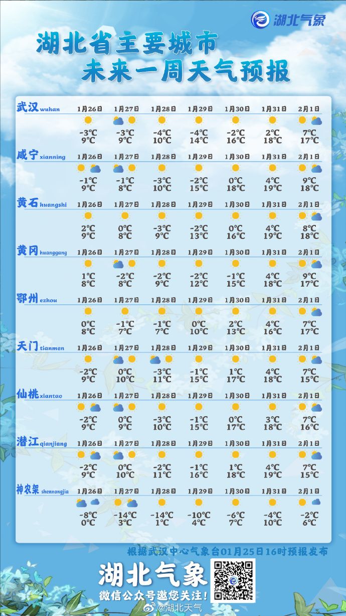 湖北今晨气温较昨天回升明显
