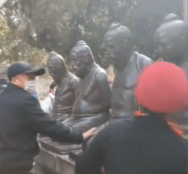 据报道,近日,河南一景区游客排长队打秦桧雕像。还有游客,用鞋子抽打雕像。