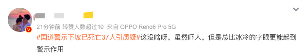 近日,浙江泰顺县一段网传视频引发关注,某公路旁警示标语显示“前方13.6公里长下坡已死亡37人!”