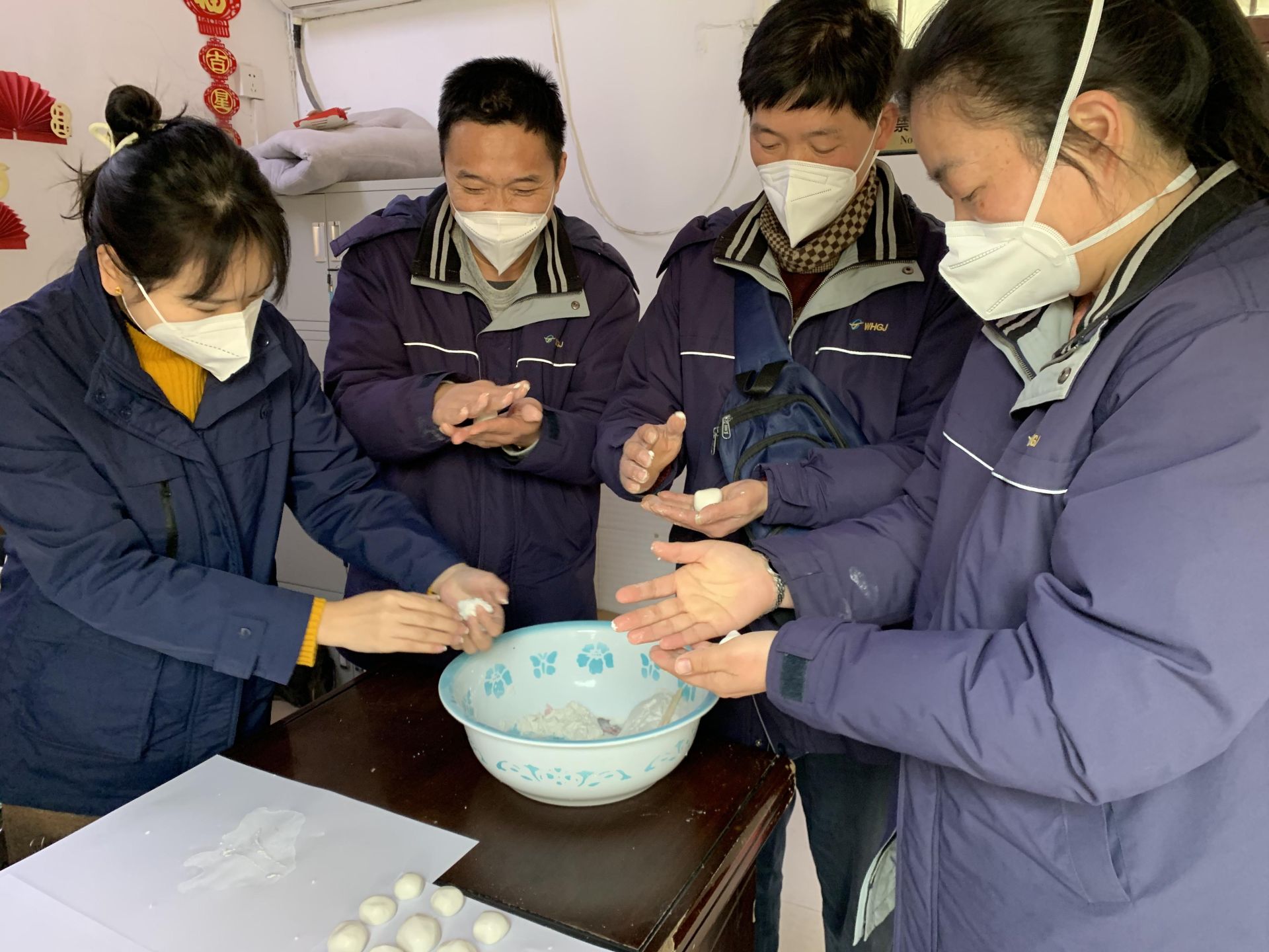 2月5日早上7点30左右,堤角前街790路公交场站内欢声一片,原来是一分公司组织管理员、调度员和驾驶员们一起包汤圆,他们揉面的揉面,拌馅的拌馅,烧水的烧水......经过2个小时的忙碌,软糯香甜的汤圆出锅了,咬上一口,甜在嘴上,暖在心里......