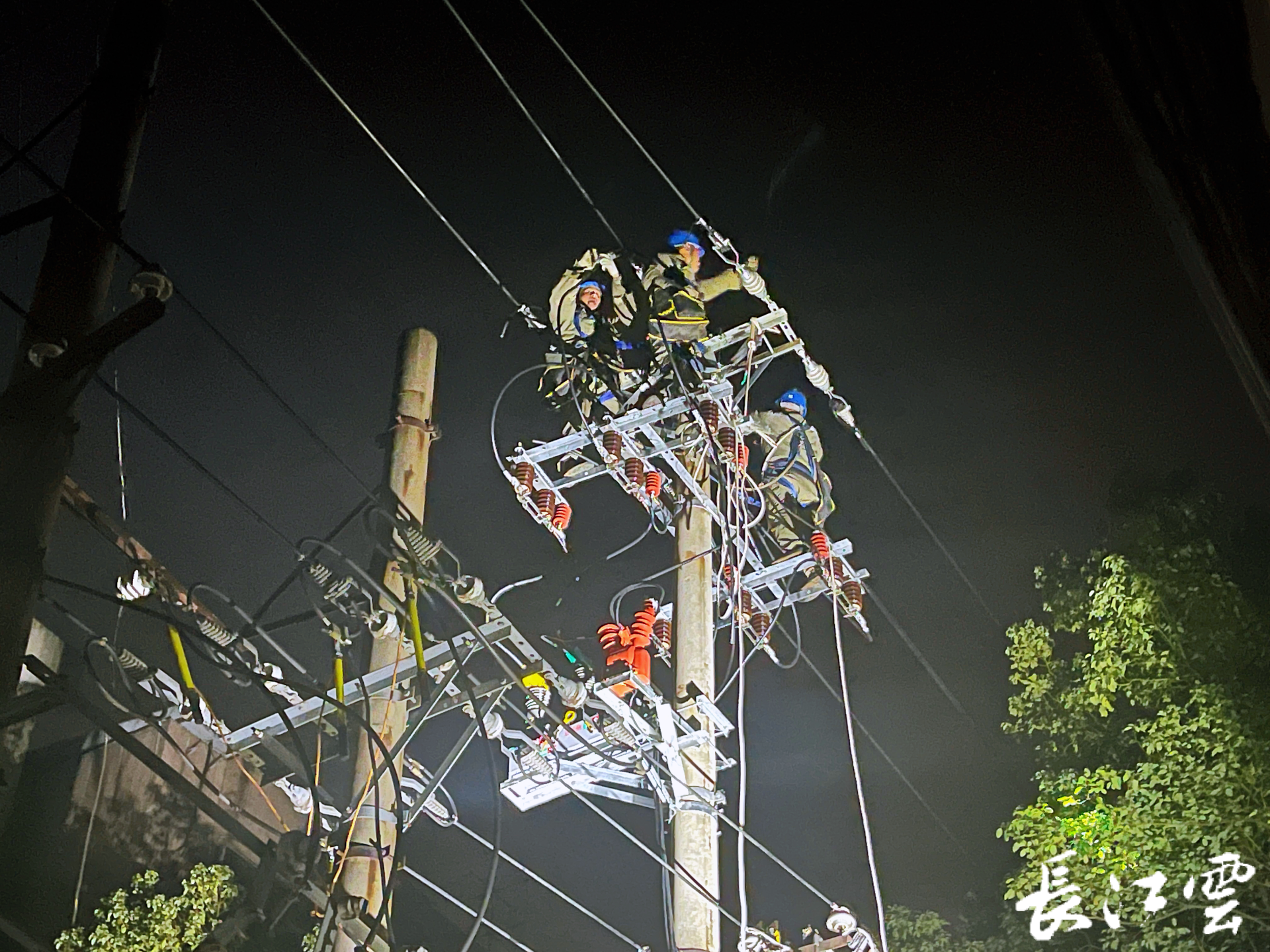 24日凌晨0点05分,国网武汉市江夏区供电公司百余名工作人员迅速在施工地点集合完毕,停电、验电、悬挂标识牌、挂接地线……做好安全措施后,检修人员按照分工,有条不紊地迅速开展消缺工作。