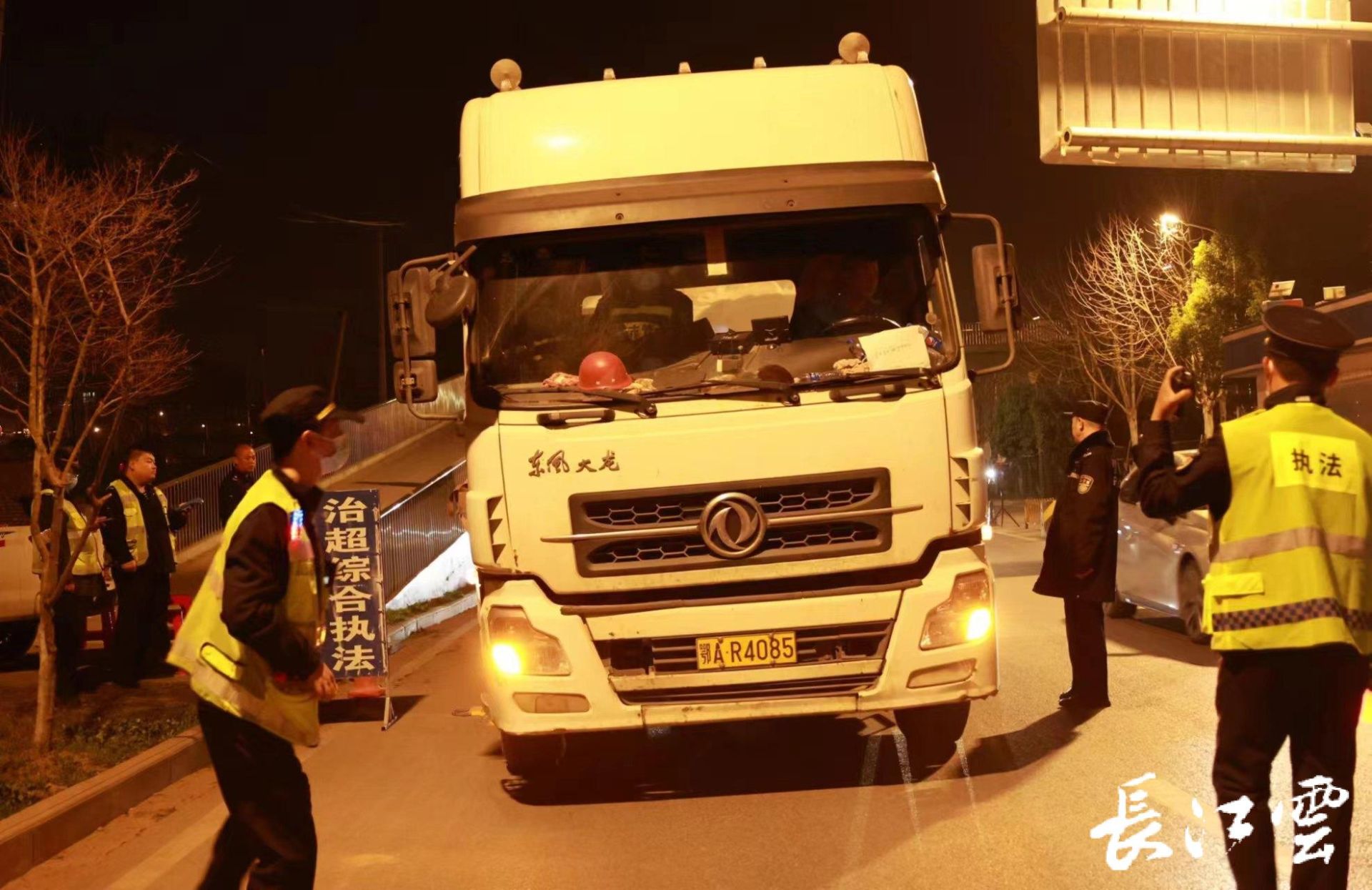 为严厉打击车辆超限超载运输行为,有效防范和遏制道路运输事故发生,3月6日晚,武汉市洪山区城管执法局在白沙洲大道附近开展超限超载执法行动,市督察总队、市桥隧中心、区交通大队参与行动。
