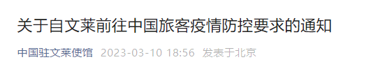 据中国驻文莱使馆微信公众号10日消息,根据新冠疫情形势发展和便利人员往来需要,自2023年3月15日起,允许搭乘自文莱赴华直飞航班人员以抗原检测(包括用试剂盒自测)替代核酸检测。为便于旅客做好行前准备,驻文莱使馆更新了《自文莱前往中国旅客疫情防控指南》,请认真阅读,遵照执行,以免影响行程。
