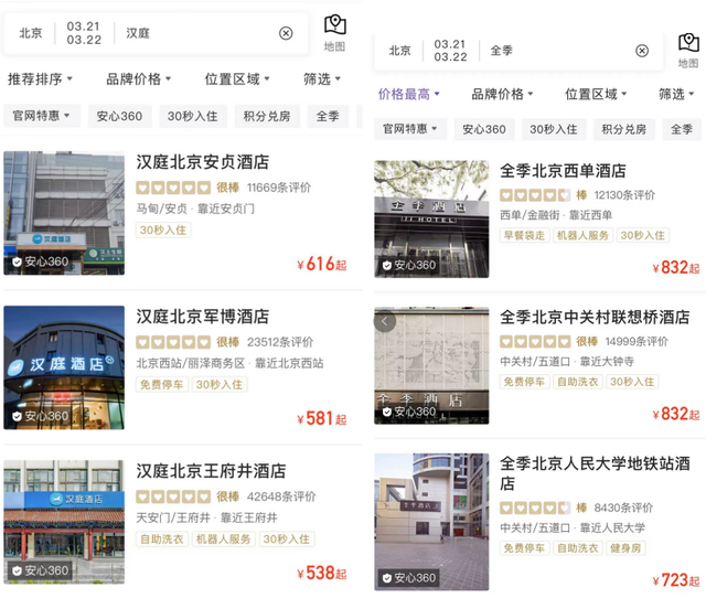 感受到北京快捷酒店价格上涨的,还有计划旅行出游的王女士。3月15日,她告诉红星资本局,她和家人计划下周去北京旅游,想预定天坛附近的一家汉庭酒店,本以为300多元就能订到,结果已经涨到了500多元,住4晚就得花超2000元。