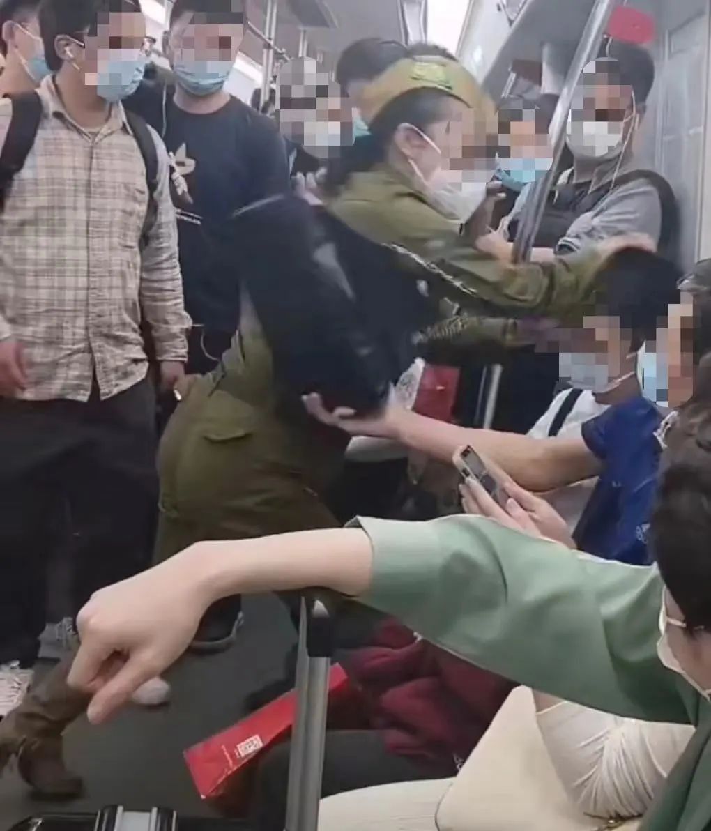目击者拍摄的视频显示,一名身穿绿色套装,挎黑色包袋的妇女叫嚣“从明天开始,所有地铁站,男人必须站着,女人坐着”“国外所有女孩子都有位置”。白衣小伙质疑后,两人发生争执,女子挥拳重击小伙头部,被众人劝阻。