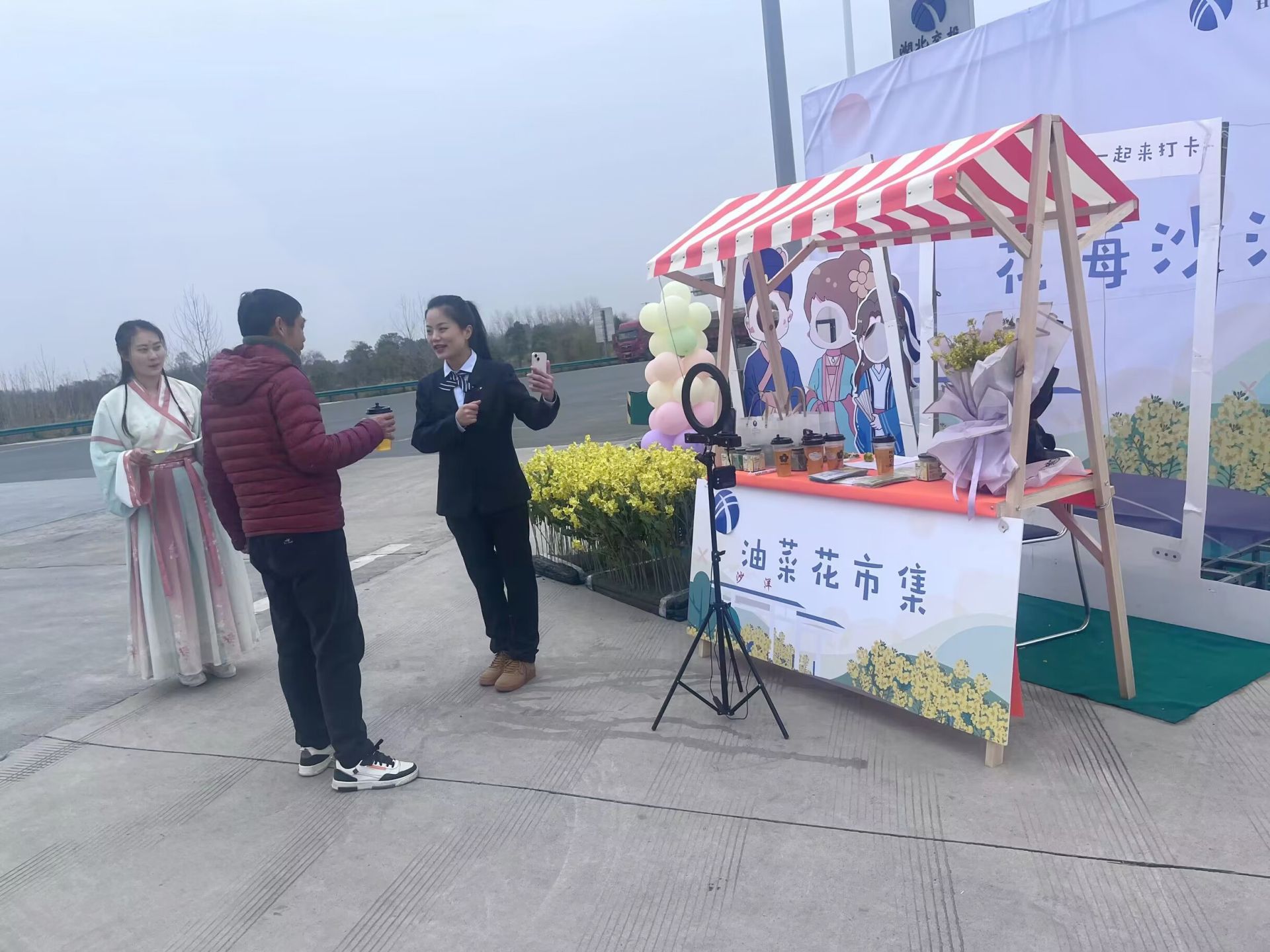 作为沙洋“门户”,随岳运营公司沙洋、马良、沙洋南收费站联合沙洋文旅局出台沙洋特色文旅活动推介方案,开启“高速+旅游”定制服务,充分利用油菜花元素对收费现场进行装点布置,悬挂油菜花节主题横幅、设置人像打卡互动区、特色文创产品展示区,开设旅游节特色服务窗口等,为司乘定制“专属打卡景点”,得到司乘一致好评。