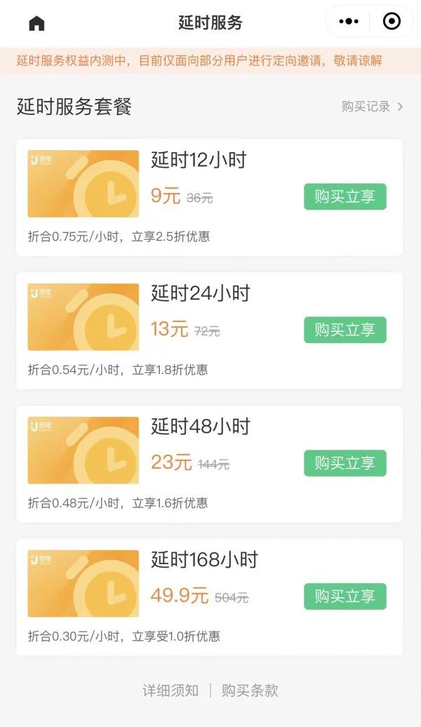 随后,记者致电“街电”客服,对方告诉记者,消费者如若遇见想还却还不上的情况,可拨打“街电”人工客服说明情况,客服将向消费者发送一条延时归还服务短信,消费者可自行选择延时归还时长,延时12小时需要9元、24小时13元、48小时23元,“从延时服务开始,租借计费就暂停了”。