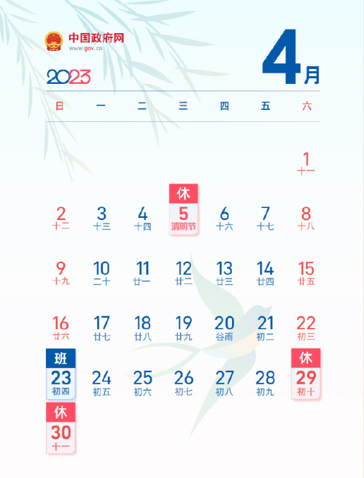 劳动节放假安排为:2023年4月29日(星期六)至5月3日(星期三)放假调休,共5天。4月23日(星期日)、5月6日(星期六)上班。