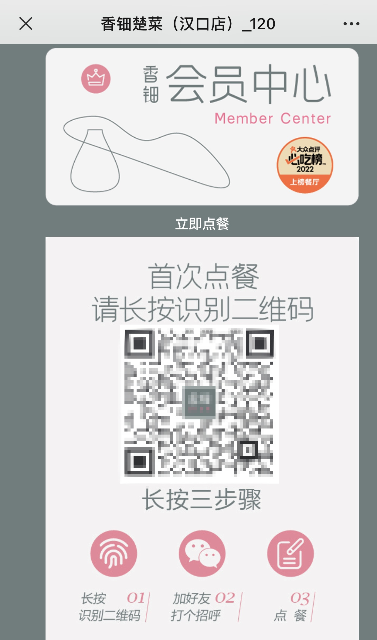 香钿楚菜餐厅微信扫码后跳转页面截图