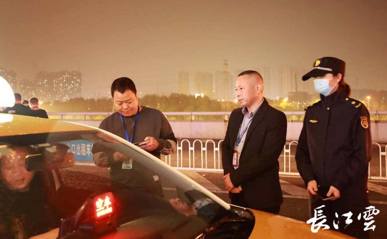 晚上21点40分左右,执法人员在武汉站东广场高架上检查时,发现1台车无服务监督卡。据介绍,出租车服务监督卡是为保障乘客权益而设立的,能够记录乘客的投诉和评价,以便出租车公司和相关部门有针对性地监督和管理出租车服务,遏制出租车驾驶员的违规乱收费等不良行为,保障乘客的利益。“它是车辆运营中必不可少的一个证件,不可随意借用他人的,否则将涉嫌违法,危害乘客安全和打乱交通秩序。”武汉站站区办综合执法大队大队长张海鹏说。