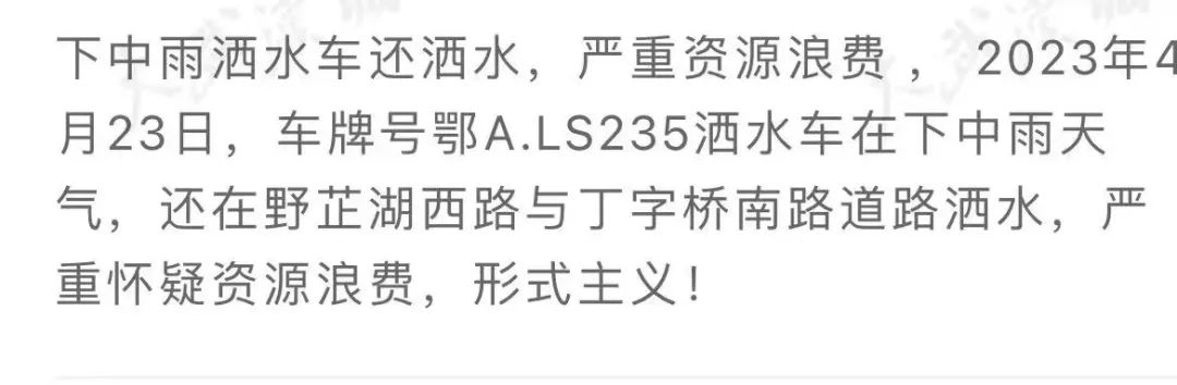 相信很多市民都有这样的疑惑:下着瓢泼大雨,洒水车还在道路上洒水,这不是多此一举吗?意义在哪里,作用是什么呢?记者也多次见过在雨中工作的洒水车,同时,12345也接到了不少市民的反映,大家纷纷表示“浪费资源”。