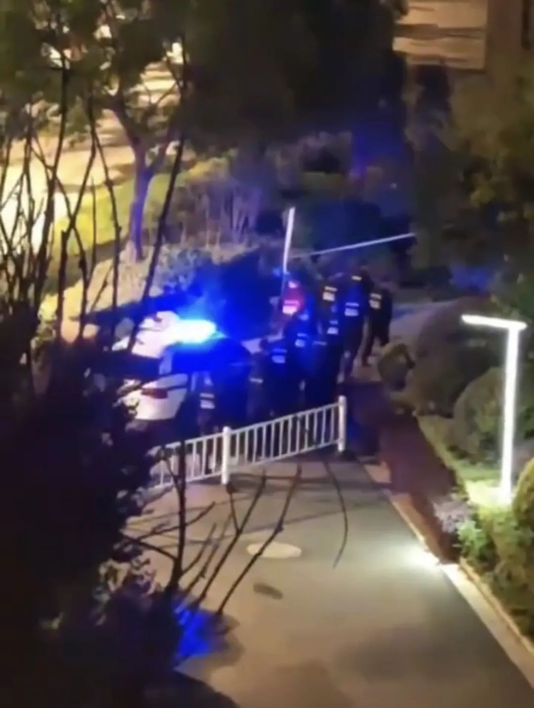 记者注意到,网传的视频显示,在一小区内部,出现多辆警车,画面中出现多名身穿制服的警方工作人员在走动,时间疑似从白天持续到晚上。在另一个显示为白天的镜头里,一辆警车停靠在路边,前方有一辆白色小车,两车中间有一辆电动车倒在地上,地面有一条长长的黑色的痕迹,一名身穿黑色上衣的男子飞速向外跑去。之后,警车附近一名男子疑似向外追去。