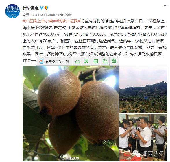 采访团一行沿着习总书记到湘西的路,分别来到凤凰菖蒲塘村、花垣十八洞村。记者们深入田间地头与山村苗寨,挖掘、纪录当地干部群众在脱贫路上的感人故事,解读精准脱贫的“湘西模式”,通过新媒体平台,生动、快速地将湘西决战决胜脱贫攻坚、全面建成小康社会的精彩故事与辉煌成就分享给全国网友。