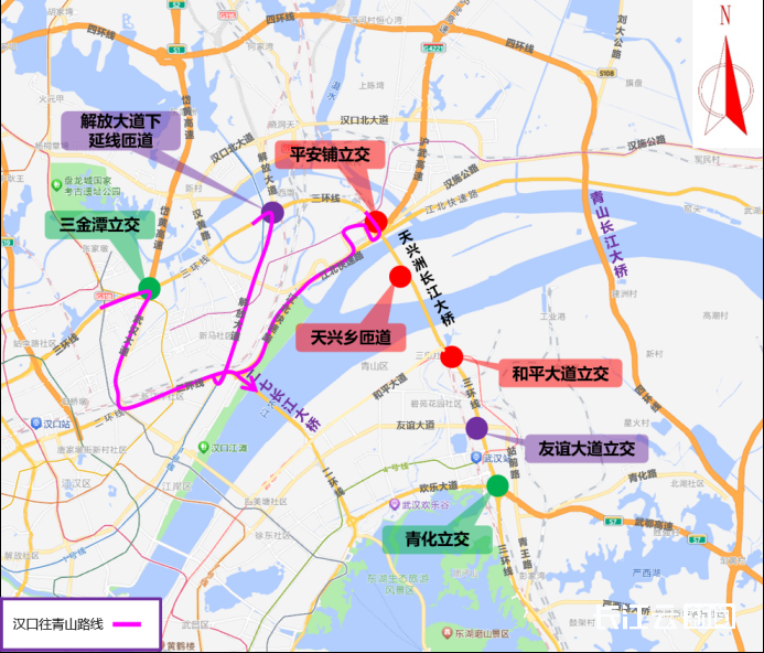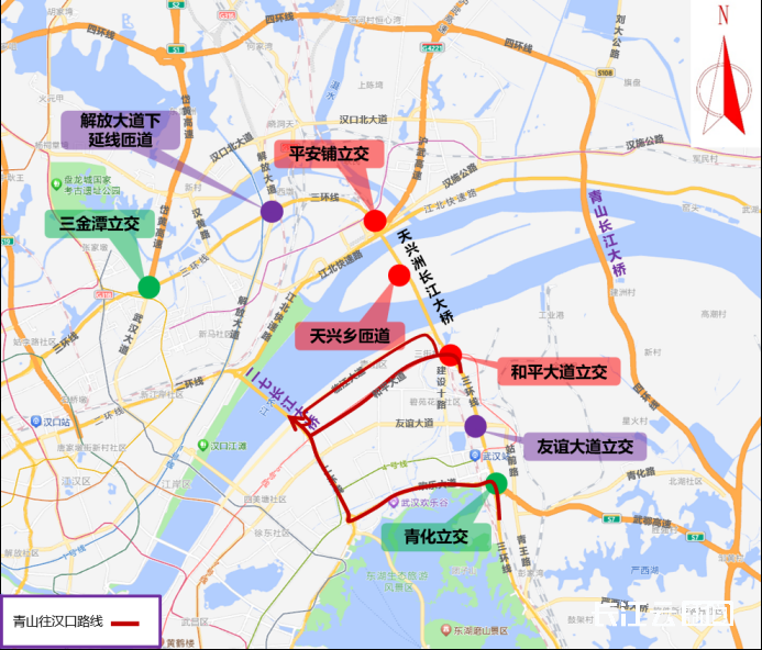3.平安铺立交—谌家矶大道—汉施公路/沪武高速—四环线。