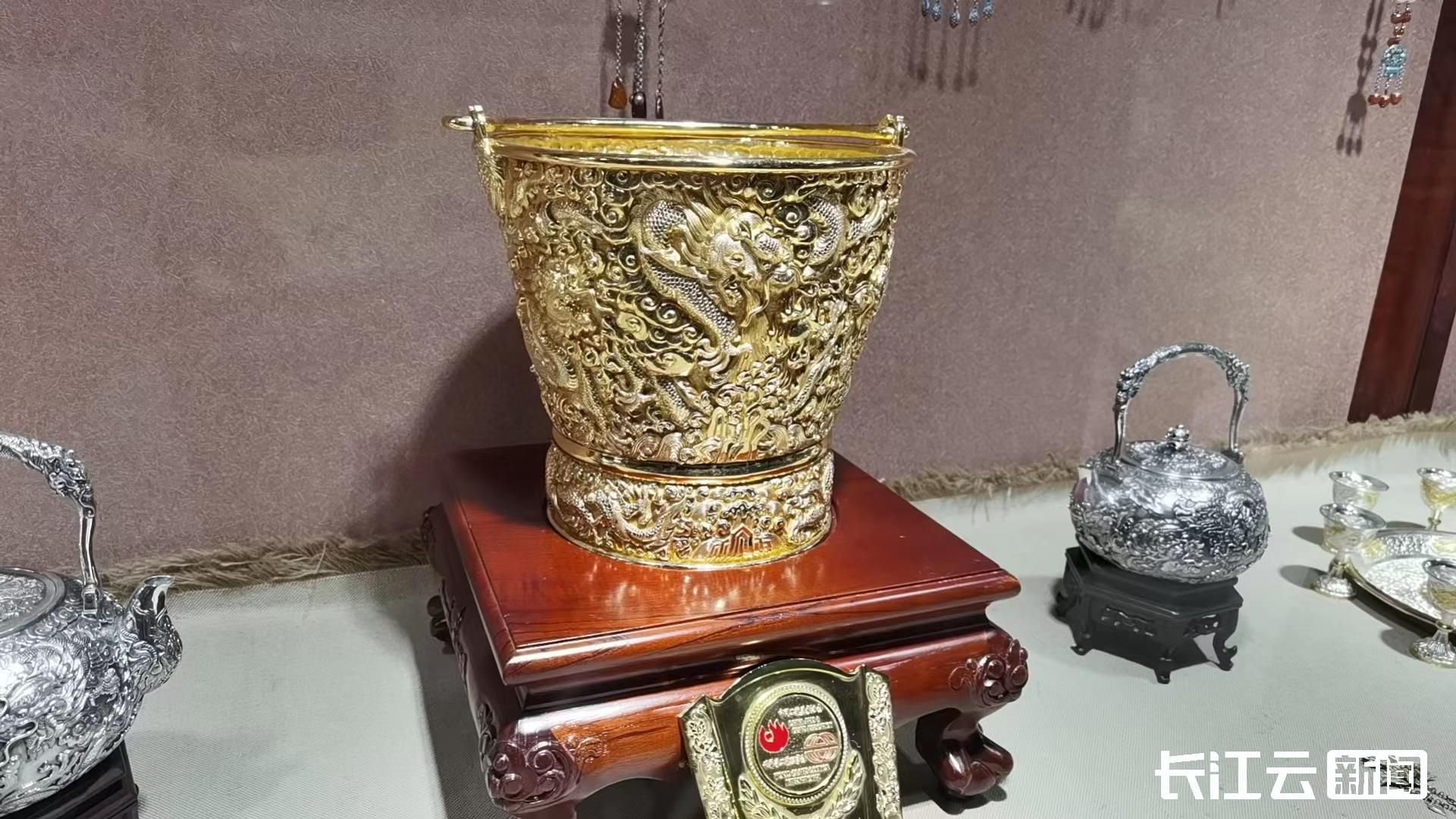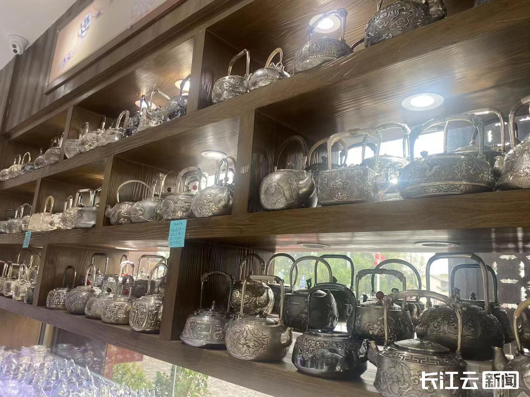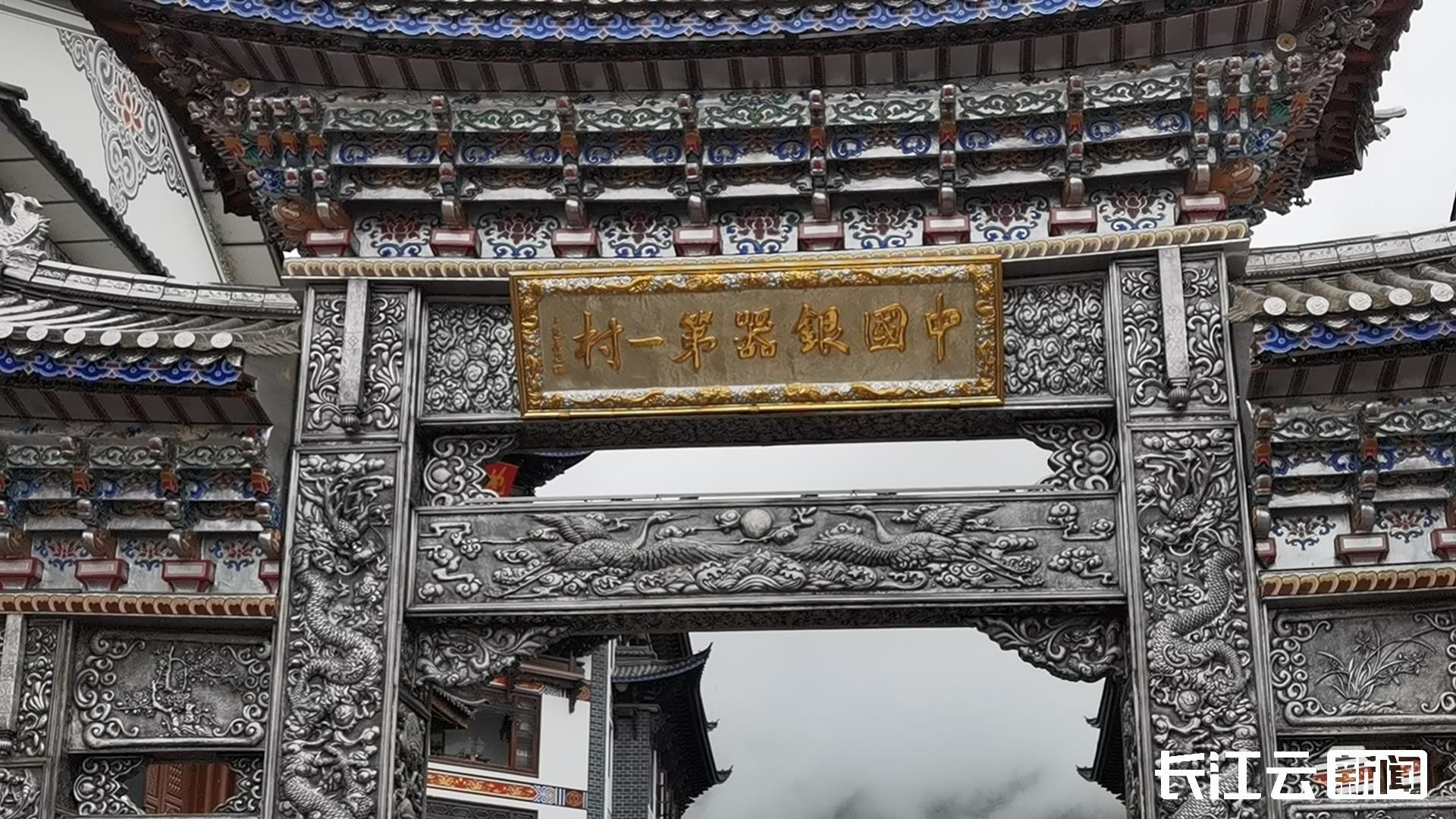 走进新华银器小镇,一座高6.8米、宽12.8米,用2.8吨纯银制作的牌坊映入眼帘。这座银牌坊雕龙画凤、飞檐斗拱,其上“中国银器第一村”熠熠生辉。