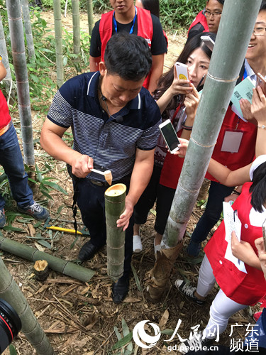 张求华砍下一根毛竹,敲开竹节取酒。钟哲 摄