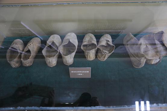 贺龙纪念馆里游击队员穿过的皮鞋原物品(中国网信网 徐可 摄)