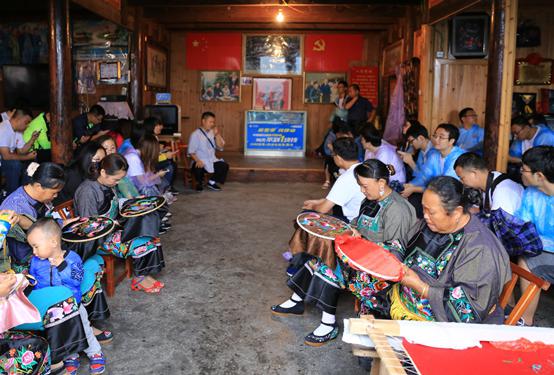 十八洞村驻村扶贫工作队队长龙秀林(居中讲述者)正在向记者介绍村里精准脱贫经验。(中国网信网 徐可摄)