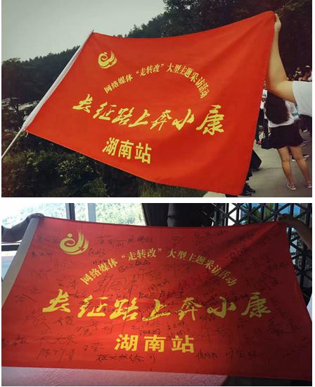 在湖南站启动仪式结束后,采访团成员在红旗上郑重地签下自己的名字,红旗从崭新的一面到被签满承诺,只用了短短的五天,但履行这个承诺,每个人也许都要为之奋斗一生。这一行,有风吹雨淋、有日头暴晒,有山路崎岖、有泥泞难行,但最终的结果却都是攻坚克难,取得成功,就像长征,就像脱贫,只要为之付出不懈努力,终究都会实现。湖南之行结束了,但对于采访团的成员们来说,对脱贫攻坚这一新长征的关注并未止步,这是责任,更是一份沉甸甸的情感与期待。正如中央网信办网络新闻信息传播局副局长刘冲在启动仪式上的讲话中强调的那样:八十年后的今天来到三湘大地重走长征路,追寻长征的足迹,就是要让大家不能忘记壮丽的长征史诗、不应忘却伟大的长征精神、不会忘了英雄的三湘人民。