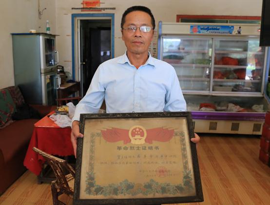 图为贺文玷烈士的孙子向记者展示革命烈士证明书(中国网信网 徐可 摄)