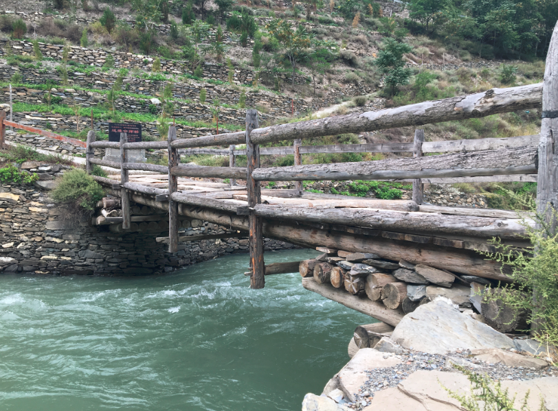 夹金山的山脚下,奔流的沃日河上,有一座不起眼的小木桥,木桥板,木扶手,两米多宽,长不到14米,个子高的人恨不得十几步就跨过去了。