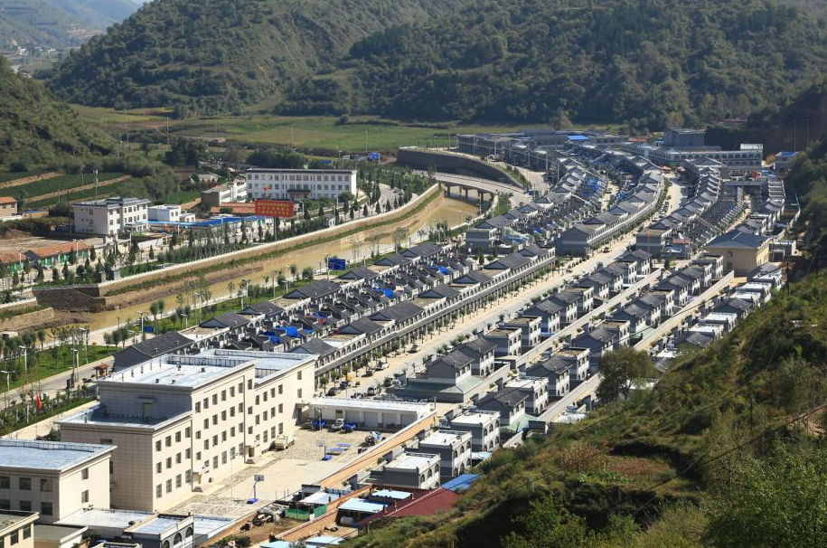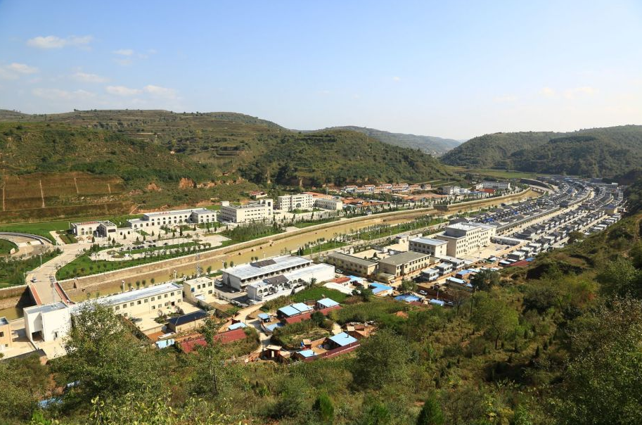 从空中俯瞰当地的红色旅游小镇。(华池县网信办供图 央视网记者 王小英)