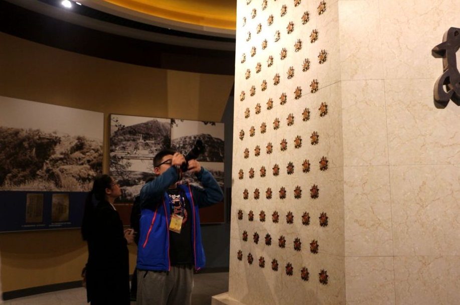 南梁革命纪念碑下方是一面无字墙。这是为了纪念在南梁创建革命根据地时,那些牺牲了却未能留下姓名的英烈。(央视网记者 王小英)