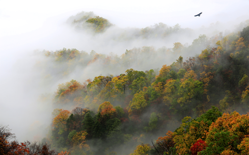 秋天的神农架万山红遍,层林尽染。神农香菊含苞怒放,华山松青翠欲滴、枫树叶姹紫嫣红……,站在山颠极目远望,黄的、绿的、紫的、红的杂然相陈,共同构成一副绚丽多色的山水画。