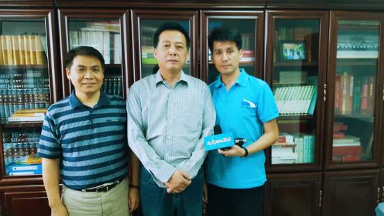 中国向阳湖文化研究领军人物、咸宁市党史研究室主任、作家教授李城外(中)、湖北广播电视台交通广播总监助理张志宏(左一)