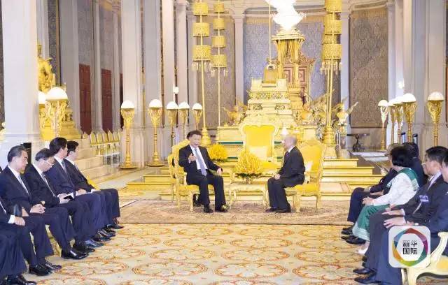 西哈莫尼国王点头回应:“柬方愿同中方一道,将两国老一代领导人缔造的柬中友谊不断发扬光大,使柬中关系越来越好、好上加好。”