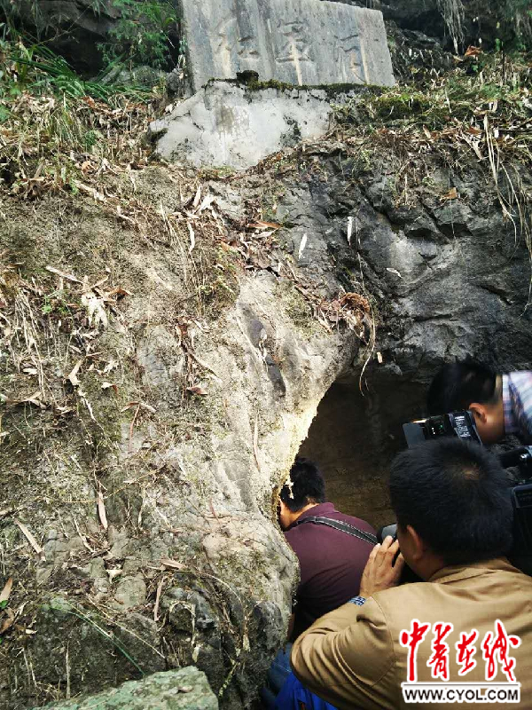 采访团成员在红军洞