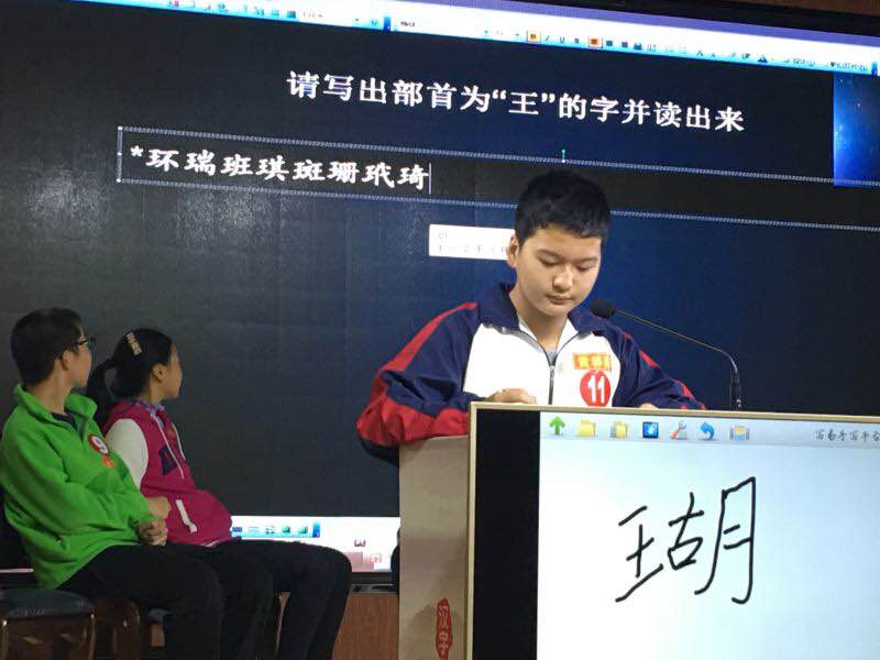选手们经过给出偏旁部首写出汉字、根据给出的拼音写出该拼音四声相关的汉字、根据描述写出成语、听写词语、限时抢答等几个环节的比拼,最终来自龙舟坪镇中学的向栩生同学摘取了汉字状元的桂冠。