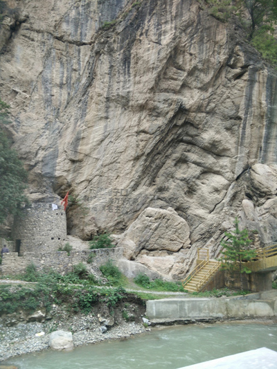 腊子口峡谷险要处宽约8米,长不过30余米,两面绝壁如刀劈斧削,旁边筑有坚固的碉堡。