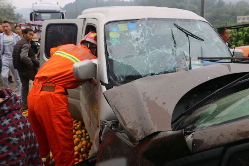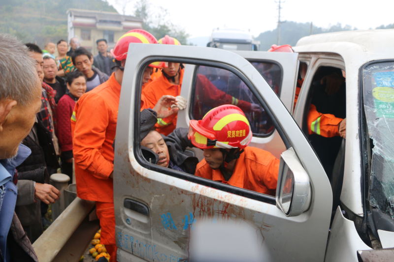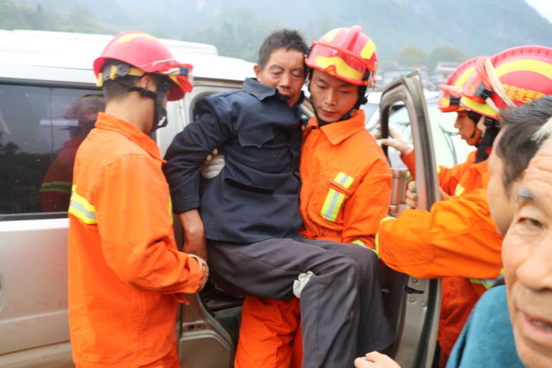 到达现场后,指挥员通过现场侦查,询问在场群众、公安民警和120医护人员后,迅速下达作战命令,组织官兵利用铁挺对变形驾驶室进行破拆,创造足够的救援空间,并找准被困人员腿部被困部位,然后利用液压剪扩钳对卡腿部位进行剪切,一点一点为腿部脱离创造足够空间,经过半个多小时的紧张救援,车内所有被困人员全部脱困,并立即移交120医护人员进行救治。