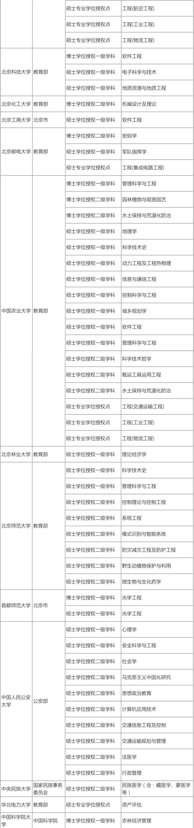 多所教育部直属高校撤销学位点,例如清华大学的海洋生物学硕士、博士点,北京科技大学的软件工程博士点,北京邮电大学的军队指挥学、工程(集成电路工程)硕士点。