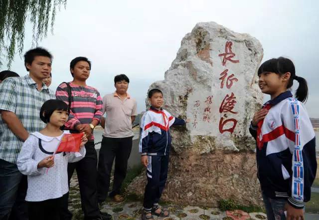 于都县长征源小学学生在为游客讲解红军夜渡于都河迈上长征路的红色历史(2011年9月30日摄)。新华社记者 周科 摄
