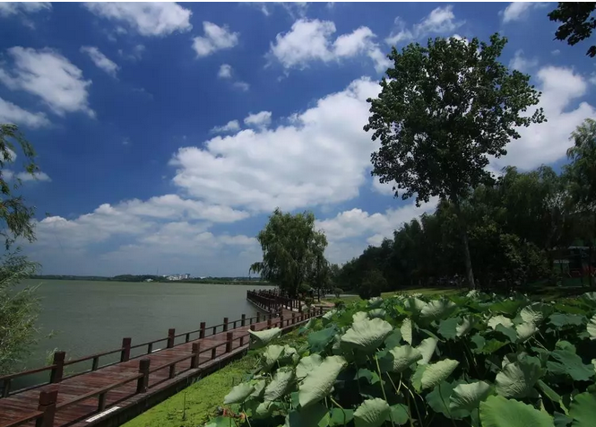 今年8月刚刚通过验收的莫愁湖国家湿地公园位于钟祥城区东北,是全国县级市中罕见的城中湖。也是汉江中游南岸的第一个大型湖泊。公园呈“一轴两湖”模式,“一轴”是指莫愁湖景观大道,“两湖”是指南湖和北湖。北湖连接上游水库,南湖有河道与汉江相通,两湖之间有护城河相连。