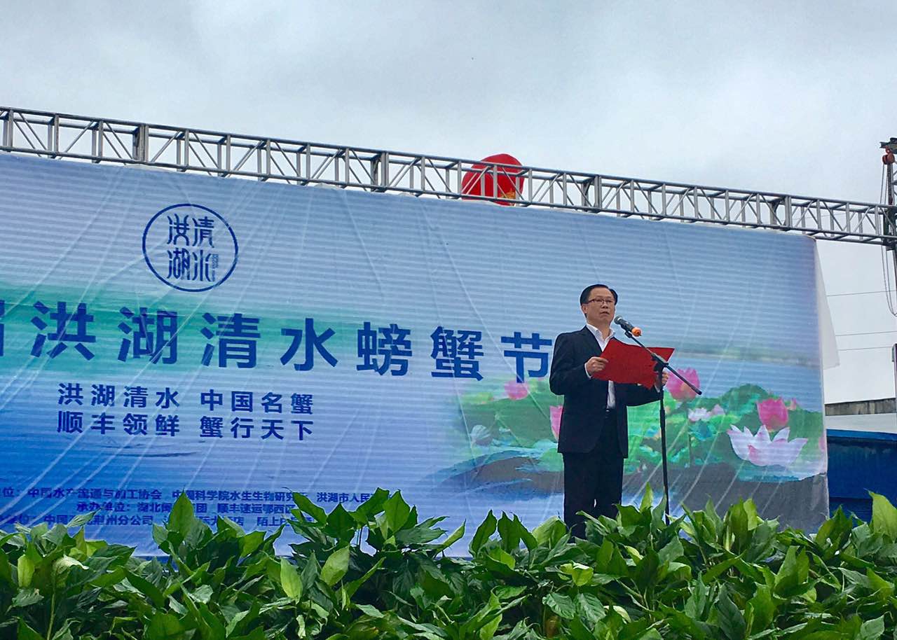 长江云报道(《垄上行》记者魏伟 昌子琪)秋风起,蟹脚黄。今天上午,第三届洪湖清水螃蟹节在湖北省洪湖市闵洪水产市场开幕。开幕式上,洪湖清水大闸蟹被授予“中国名蟹”称号,洪湖市被授予“中国名蟹第一市”称号。